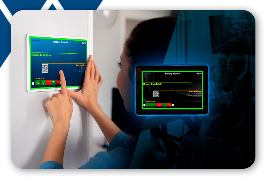 With Booking Display, you transform meeting room management. This interactive display, installed at the room's door, allows employees to see the space's real-time availability, check-in, and even extend or release the reservation directly from the screen.